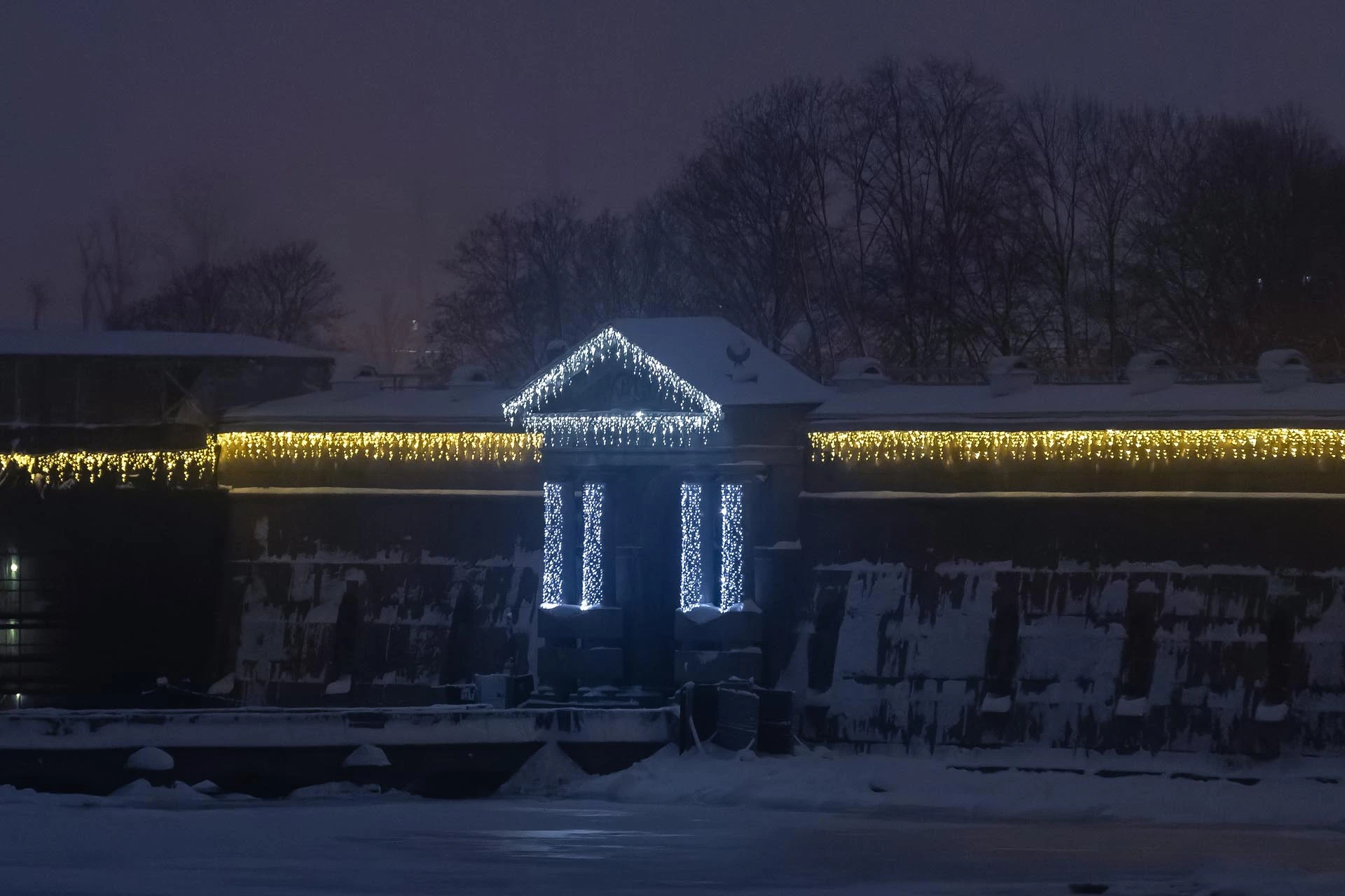 Вход и бастионы легендарной цитадели теперь украшены эффектными гирляндами и динамическими стробоскопическими лампами, превращающими крепость в волшебное пространство, где переплетаются история и современные праздничные технологии.